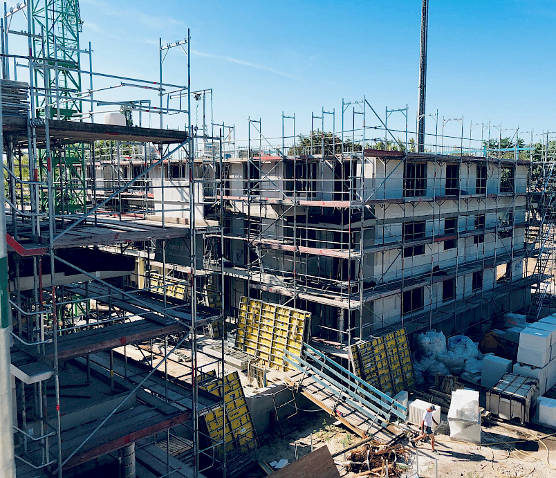Letztes Jahr starteten die Bauarbeiten im ehemaligen Gaswerk Nauen - heute ist der Fortschritt bereits deutlich erkennbar. An den historischen Gebäuden Apparate- und Ofenhaus läuft die Klinkersanierung und die Rohbauarbeiten sind beinahe abgeschlossen. Auch die Neubauten Quadrohaus und Lux & Lumen wachsen in die Höhe. Am Gasometer laufen vorbereitende Maßnahmen, das letzte Haus NEON (mit 38 Wohneinheiten von der Suite mit ca. 39 m² bis hin zur Senioren-Wohngemeinschaft mit ca. 459 m2) ergänzt das Quartier.