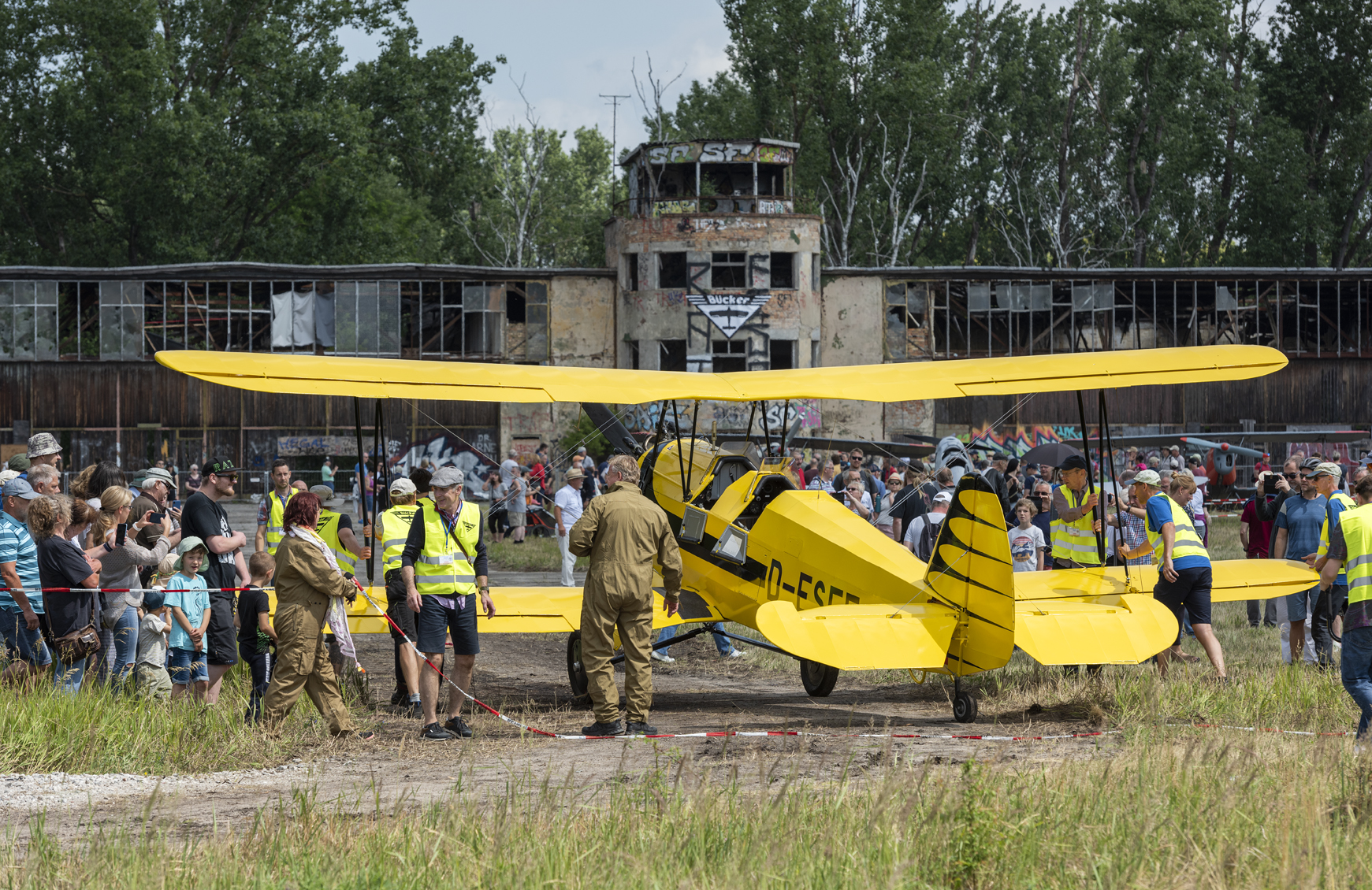 Vergangenes Wochenende ging es auf dem Gelände der ehemaligen Bücker-Werke hoch hinaus! Ein letztes Mal hatten bei einem internationalen Fly-In Flieger von Bücker-Maschinen die Chance, auf dem Areal zu starten und zu landen. Nachdem der erste Veranstaltungstag wetterbedingt ins Wasser fallen musste, fanden sich am Samstag und Sonntag bei strahlendem Sonnenschein über 3000 Besucher auf dem Gelände ein. Groß und Klein erfreuten sich an den Maschinen. Ein voller Erfolg!
