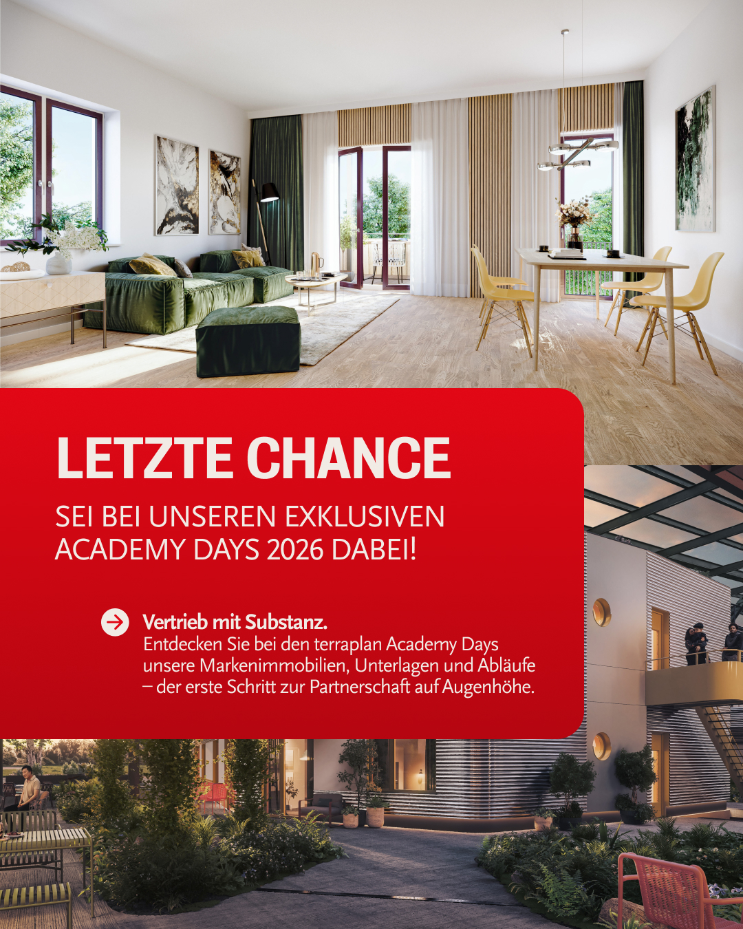 Die Academy Days sind als praxisorientiertes Format aufgebaut. Im Mittelpunkt stehen konkrete Vertriebsprozesse, umsetzbare Werkzeuge und neue Markenimmobilien, die Sie 2026 in Ihrem Vertrieb begleiten werden.